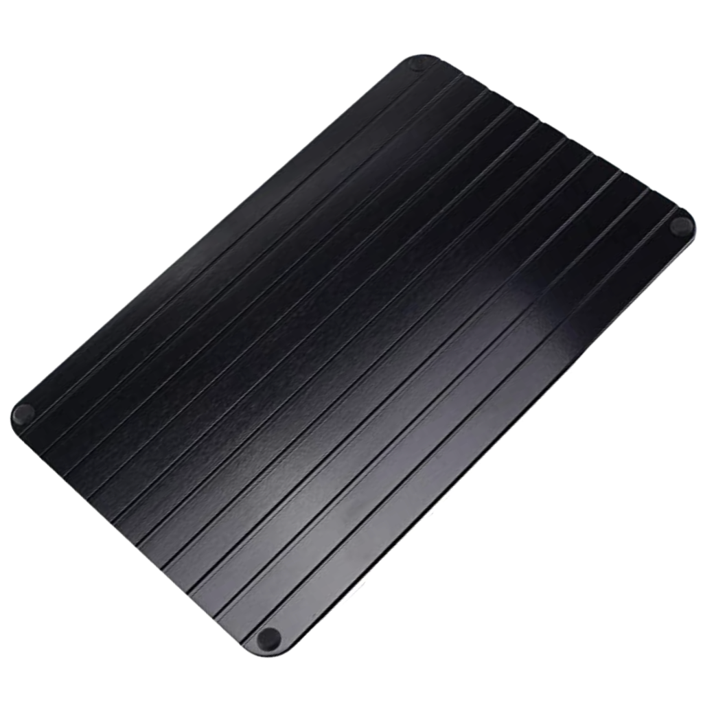 Conductive metal alloy has the particularity to absorb the cold and convert it into heat. This is why no other electric source is needed to defrost your food.