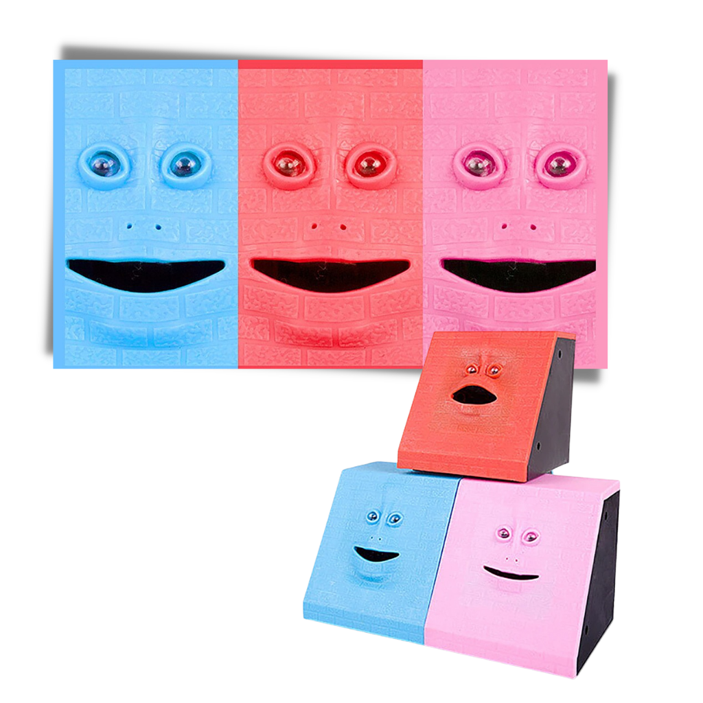 The face of the Money Eating Piggy Bank has is made from soft and elastic elastomer material. The surface imprint is like bricks and the piggy bank has 4 non-slip feet on the bottom. The movements of the face are so realistic that it will impress and mesmerise almost anyone. On top of that, the design is smooth and comfortable to touch.